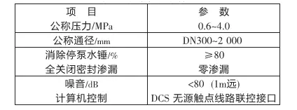 大口徑液控緩閉蝶閥設計要求 引言 大口徑液控緩閉蝶閥采用機械、液壓、電控、計算機一體化形式,可替代閘閥、止回閥、調節閥,節材、節能、節耗、節省占地空間;該閥門具有分階段開閥與關閥功能,因此,在開閥過程中能有效控制水擊,在關閉過程中能有效地消除停泵關閉水錘,保護管路與設備安全,同時在管路上安裝時因其具有伸縮功能安裝時非常便利。但傳統的閥門只具有單一的功能,閘閥只起閘閥的作用,止回閥只起止回閥的作用,在管路上開啟與關閉時不能夠有效控制水擊,因此液控緩閉蝶閥被電廠、水廠廣泛采用。 1 設計原理 1.1 閥門工況分析 液控緩閉蝶閥分重錘式和蓄能式兩種,使用工況主要有離心泵工況和水輪機工況等。 開閥離心泵工況(包括離心式混流泵):先啟動泵,延遲預定時間后開閥。開閥水輪機工況:先開啟旁通閥平衡壓力,再開閥,后開啟水輪機。各種工況均要求在停機或停電的同時關閉閥門。 1.2 閥門類型 (1)重錘式。開閥時,電磁閥換向,油泵啟動,液壓油經流量控制閥、高壓膠管進入油缸,推動活塞將閥門開啟。開閥到位后自動保壓系統啟動,電機繼續給保壓蓄能充壓,壓力達高壓力設定點后停機。旋轉流量控制閥手輪可以調整開閥時間。 關閥時,電磁閥換向,油缸內的壓力油經快、慢關節流閥、高壓膠管、電磁閥回到油箱,重錘落下,蝶板旋轉關閥,迅速切斷前約70%行程的大部分水流,后30%行程則緩慢關閉。快慢關角度及各階段時間可以根據管道實際工況進行調節,有效消除管道水錘。 (2)蓄能式。開閥時,電磁閥換向,蓄能器釋放能量,液壓油經調速閥,單向閥及高壓膠管進入油缸,推動活塞運動,閥門按調定的程序開啟,蝶板開至機械限位調定全開位置。 關閥時,電磁閥換向,蓄能器釋放能量,推動油缸反向動作帶動蝶板按調定程序關閉閥門至全關位置。 啟閉過程中,當系統油壓低于壓力控制器調定下限值時,油泵自動開啟,給蓄能器蓄能,當蓄能器能量貯存至壓力控制器調定上限值時,油泵停止運轉。 電器與液壓部分組成控制系統,可實現泵閥聯動、遠距離控制、PLC編程控制操作,提供DCS觸點接口,供計算機管理。 2 設計主要技術性能參數(見表1) 表1 技術性能參數