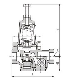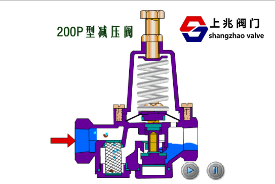 200P水用減壓閥屬于先導活塞式減壓閥。由主閥和導閥兩部分組成。主閥主要由閥座、主閥盤、活塞、缸套、彈簧等零件組成。導閥主要由閥座、閥瓣、膜片、彈簧、調節彈簧等零件組成。通過調節調節彈簧壓力設定出口壓力,利用膜片傳感出口壓力變化,通過導閥啟閉驅動活塞調節主閥節流部位過流面積的大小,實現減壓穩壓功能。水用減壓閥主要用于蒸汽管路,起減壓穩壓作用。